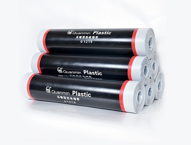 壓敏膠型熱收縮帶,又名:熱烤壓敏帶,是一種是將丁基橡膠改性聚異丁烯壓敏膠粘劑涂敷在輻射交聯(lián)聚乙烯基材上制成的熱縮自粘防腐蝕保護材料。